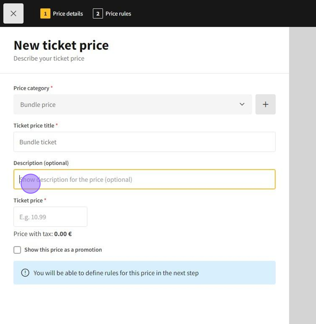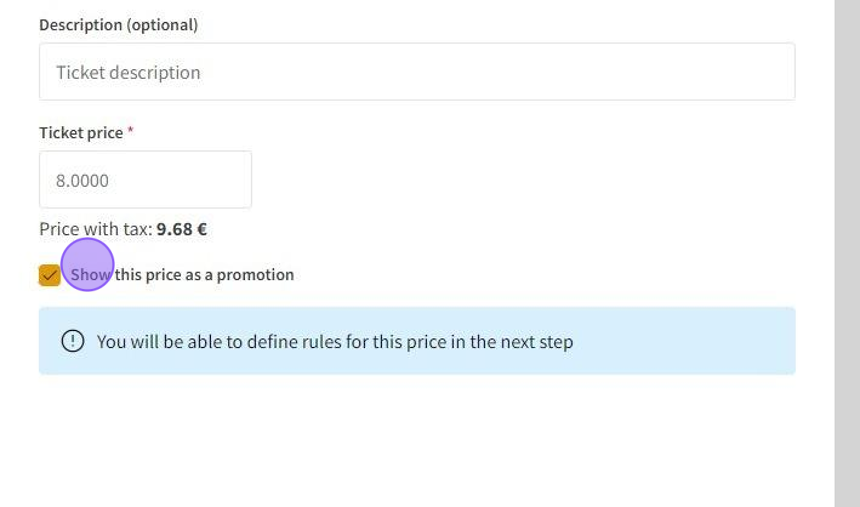 4.In Description write the ticket price's description.