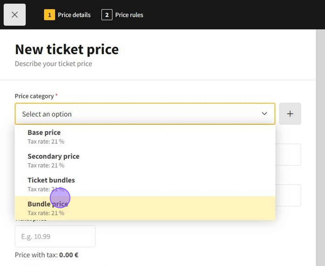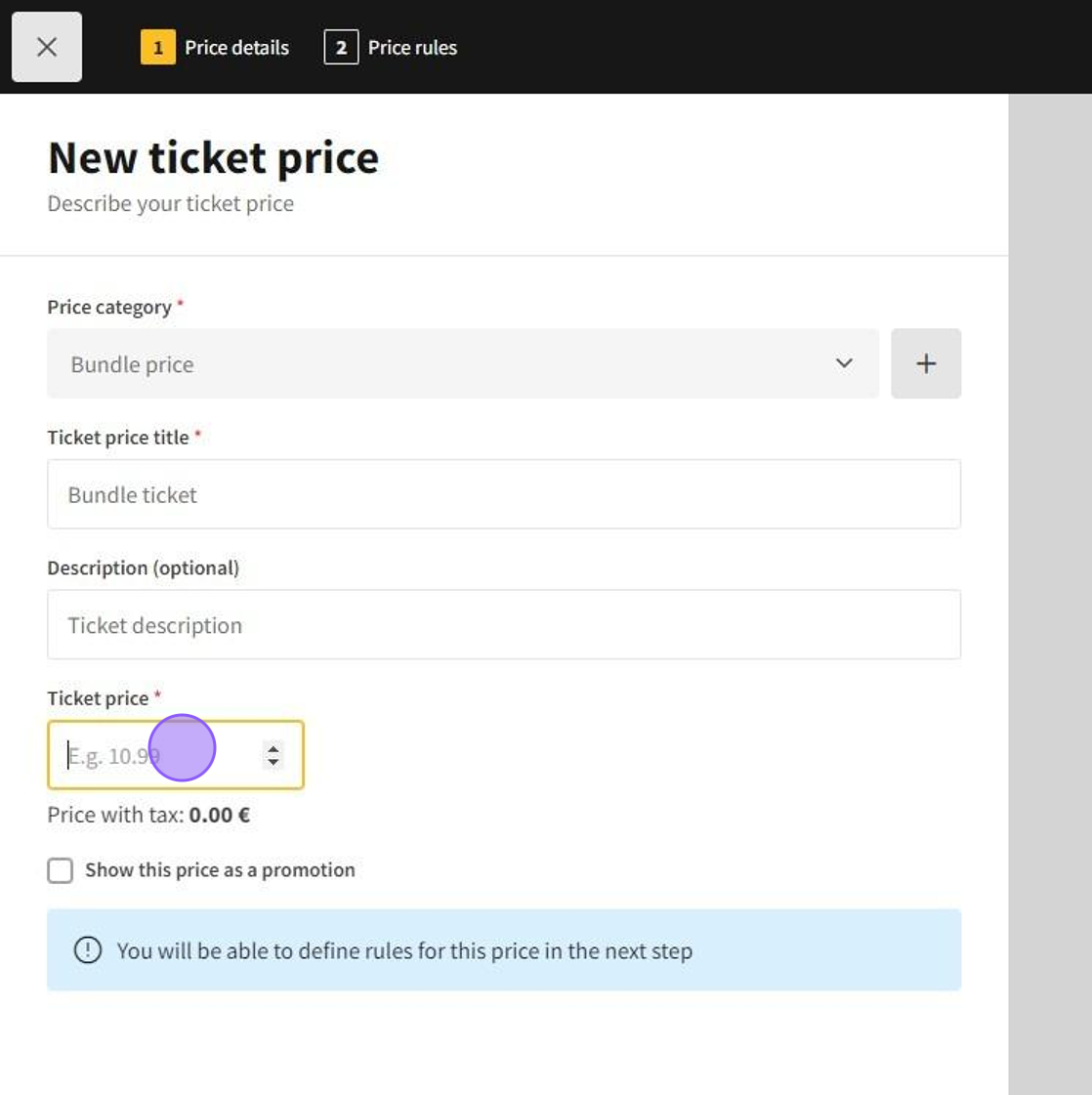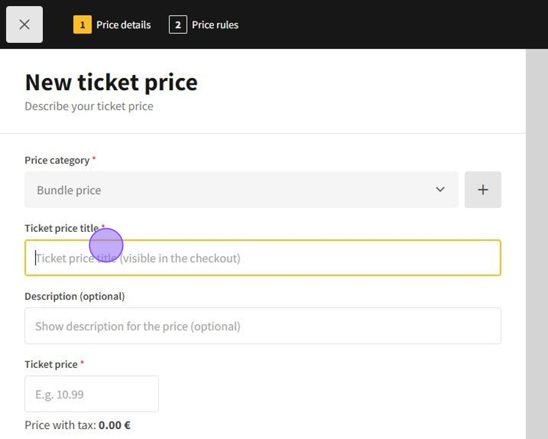 1.Click New ticket price to add a new ticket price.