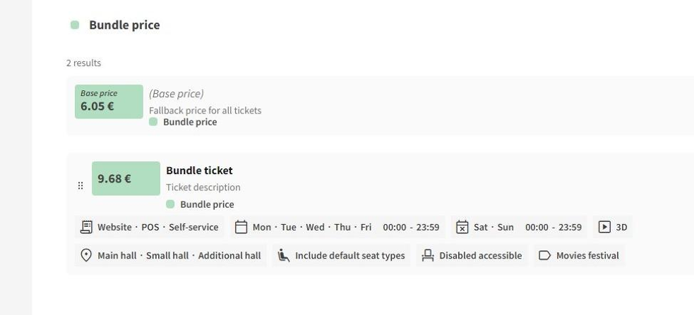 - Genres: applies tickets only to movie sessions with selected genres, if none selected applies to all