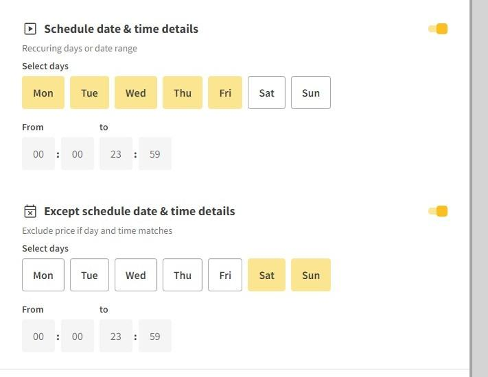 - Schedule details: allows to use tickets only in selected channels, if none selected applies to all