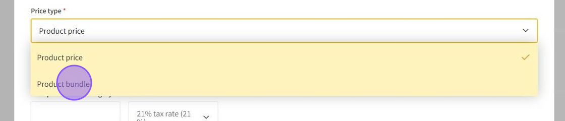 7.Type in the default price for the category and select the tax rate for it.