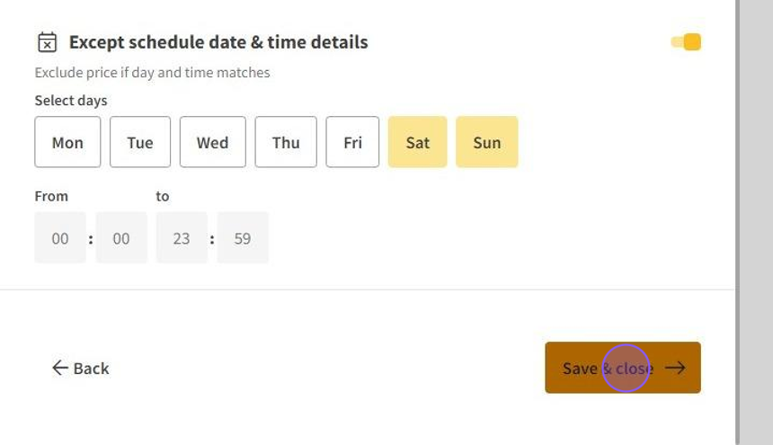 11.Click on Save & close to save the ticket price.