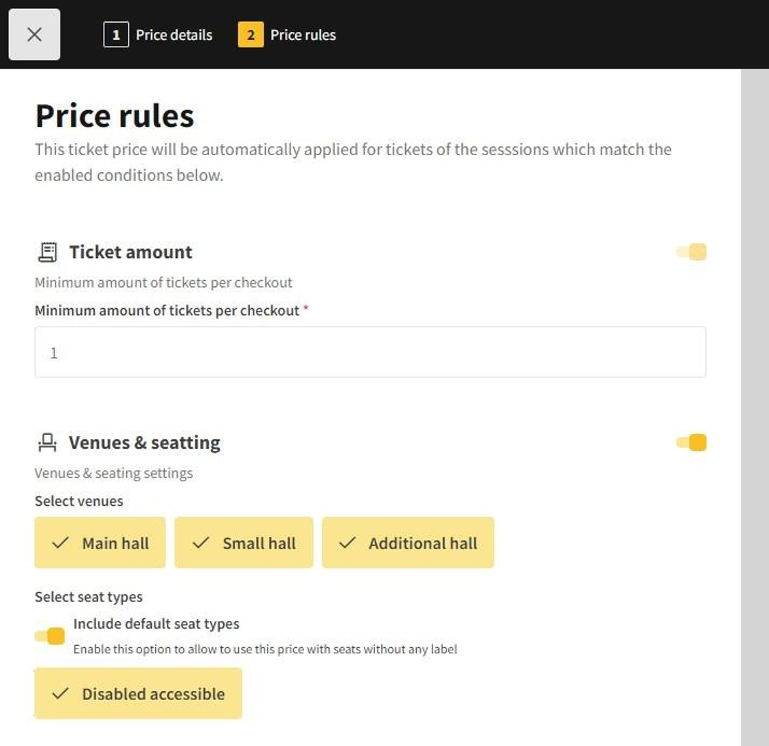 - Seat type: select which types of seats can use this ticket price