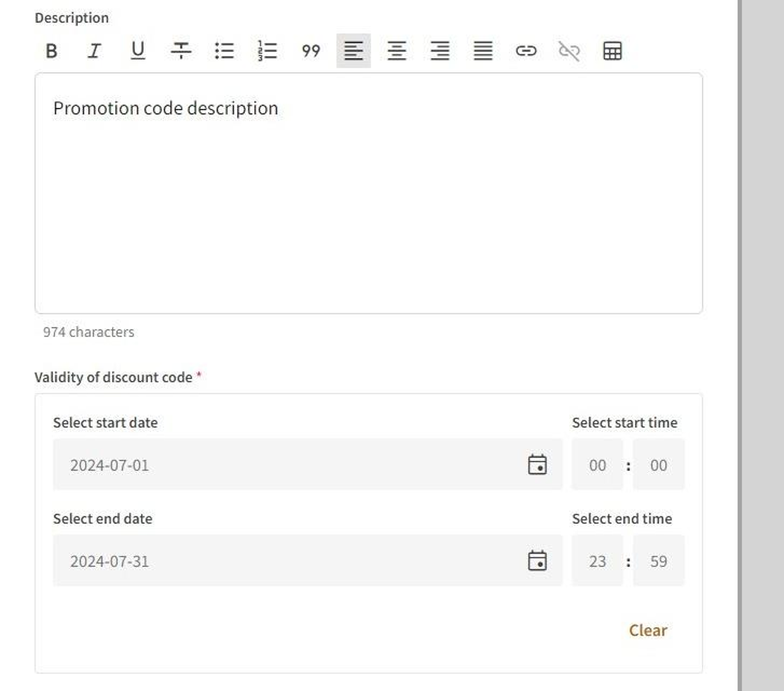 - Schedule details: allows to use promotions only in selected channels, if none selected applies to all