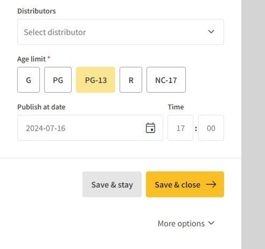 - In the "Publish at date field the date is set when the movie's page on the stage site will become public