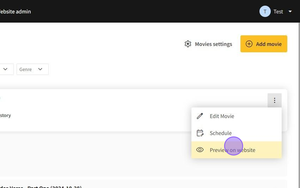 - Preview on Website: Provides a preview of the movie's page on the website.
