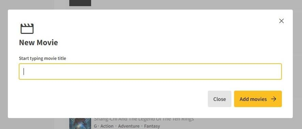 3.Enter the title of the movie in the "Start typing movie title" field. Then click on "Add movie" to continue.