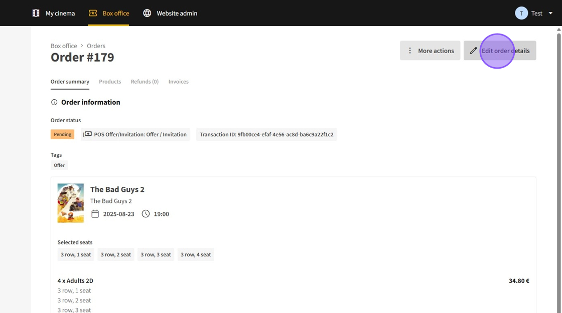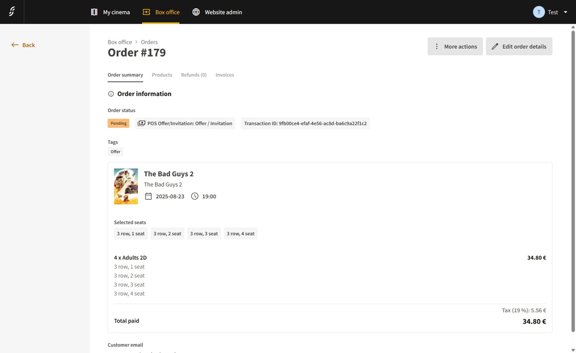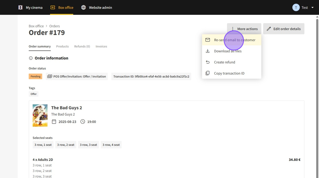 7.From the available actions, you may resend the order email, download all associated files (such as tickets or vouchers), initiate a refund, or copy the transaction ID.