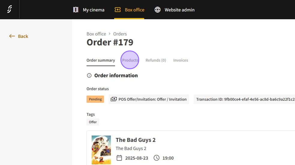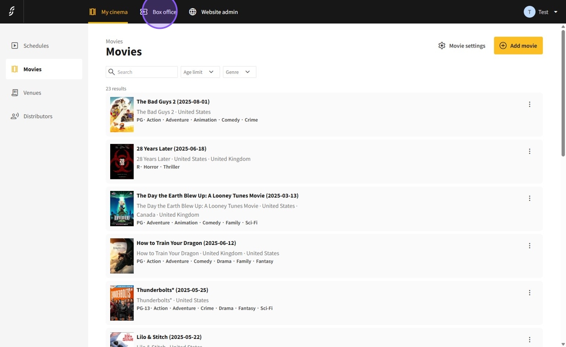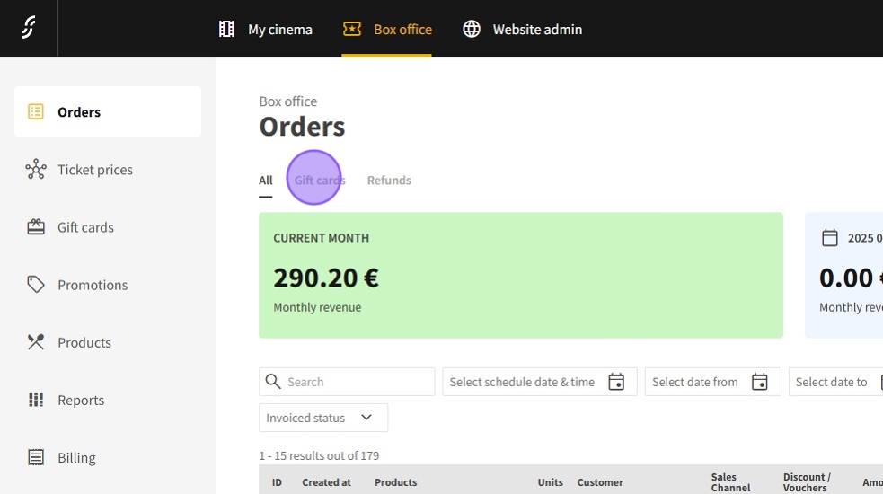1.Access the Dashboard and select Box Office.