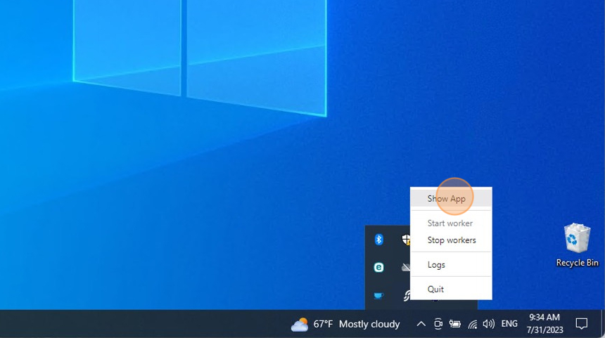 3.Click on Show App